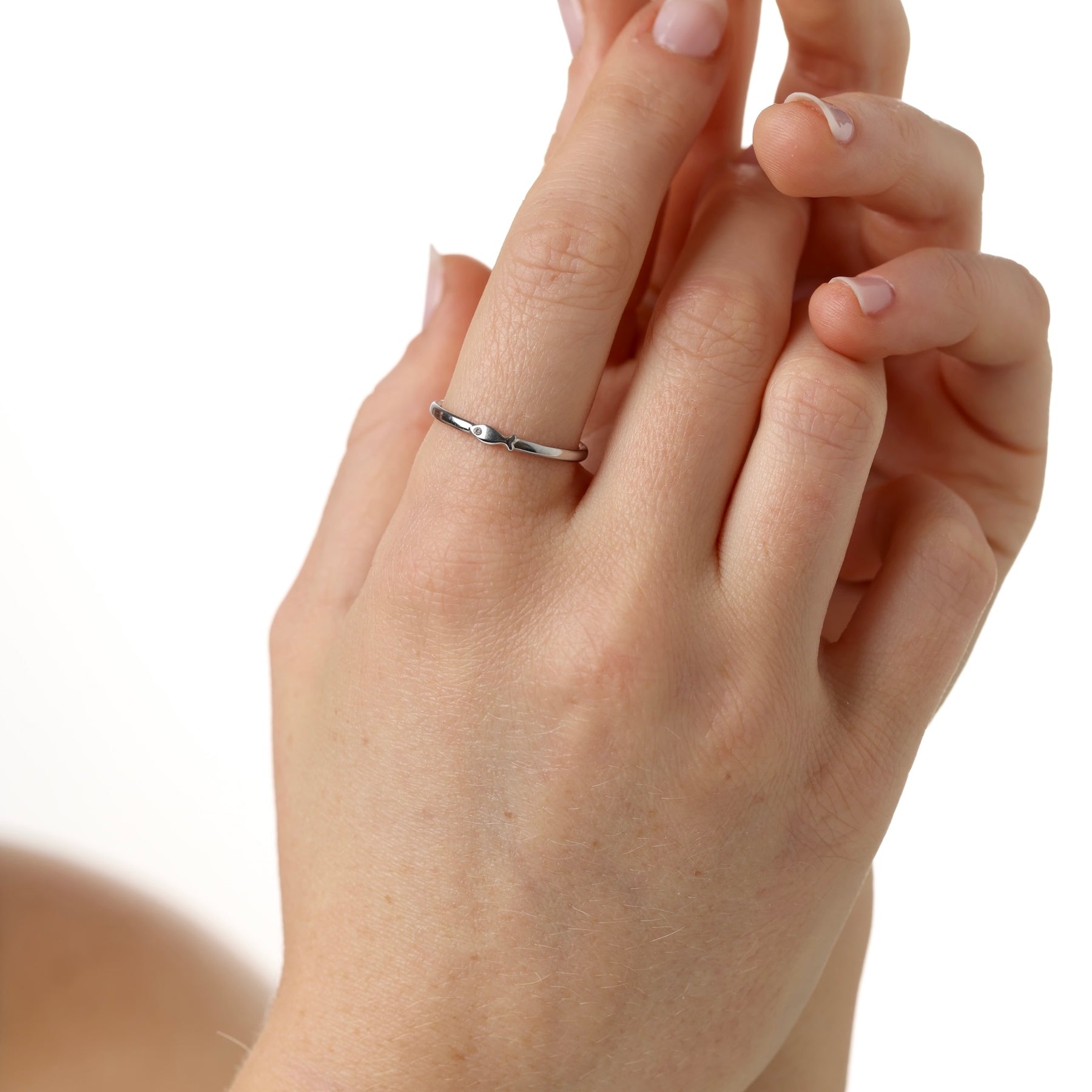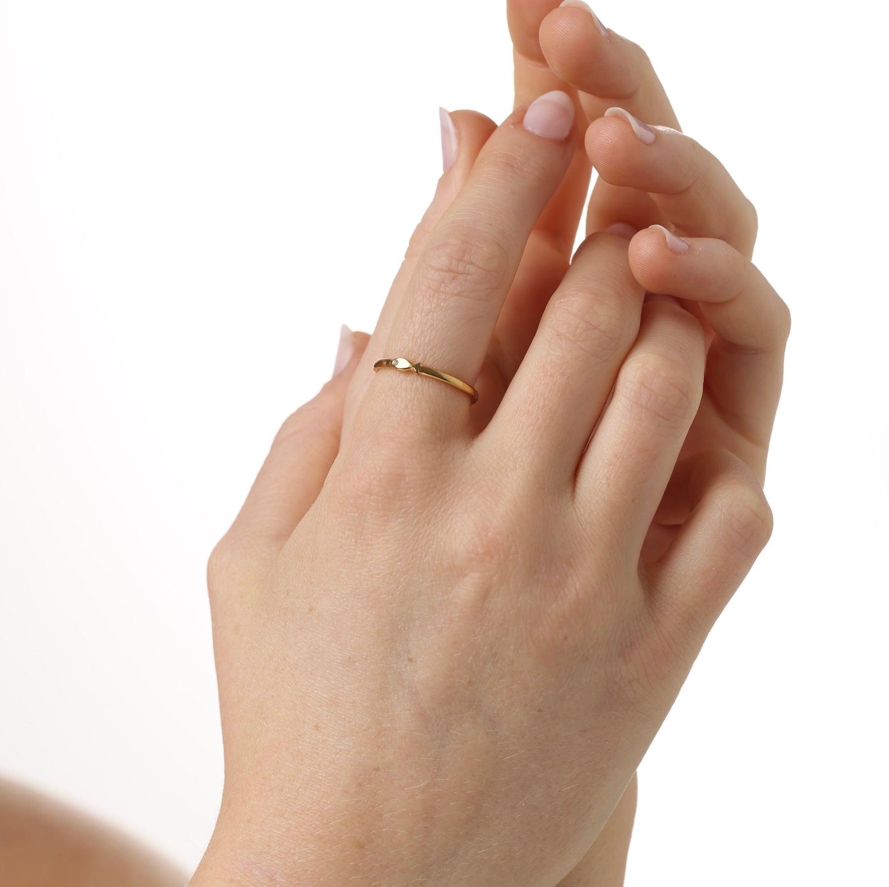 Fischring mit verspieltem Detail. Waterproof Edelstahl, stapelbar oder solo tragbar. Niedlich und zart, aber mit einem kantigen Touch.