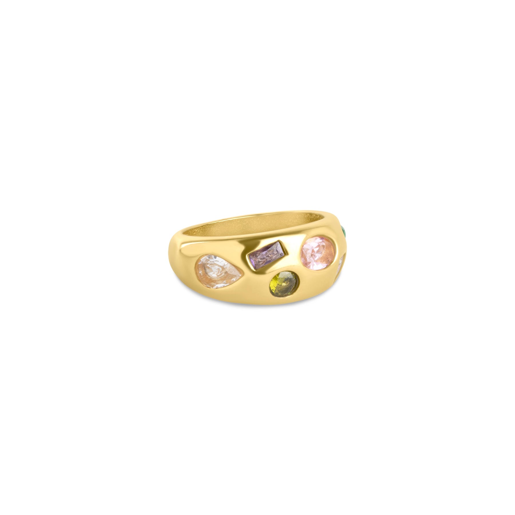 A bold dome ring finished with crystals, crafted in waterproof stainless steel.